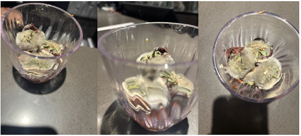 We returned to our room around 8:45pm, and resumed our packing. At some point, I noticed a glass on the vanity table that had some type of molded produce in it. I pointed this out to Stephanie, who had also noticed it and was about to ask me if I knew where it came from. Upon closer inspection, we learned that it was molded chocolate strawberries!